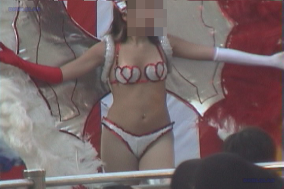 いきなりブロンドヘアのおねいさんが紅白屏風の前でのダンス披露です。