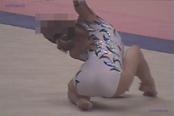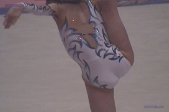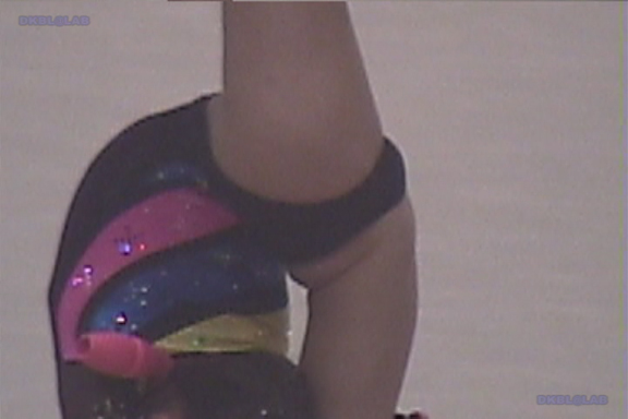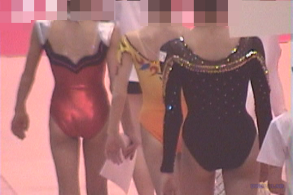 表彰式から閉会式のシーンから、黄色のユニ娘がレオタード娘をエスコート。
