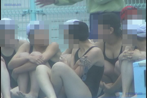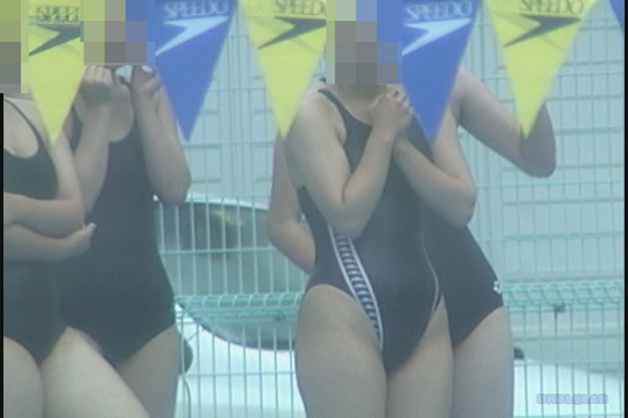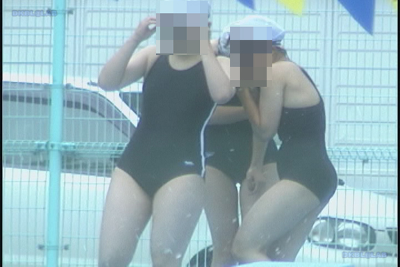 レッスンメイトが和気あいあいとプールサイドにやってくる。そしてずらりと並ぶⅤ水着のまま屈伸運動。