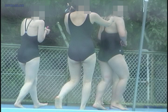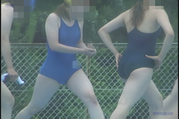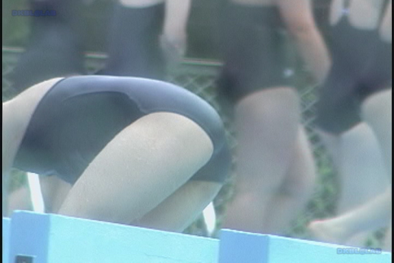 準備体操シーンから、陸の上下水色のジャージ娘のシーンまで。