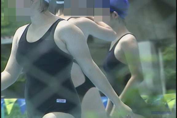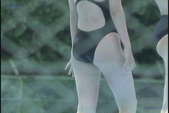 水着姿のままプールサイドでの腕立て伏せなど本格的な準備体操からの入水シーンへ。