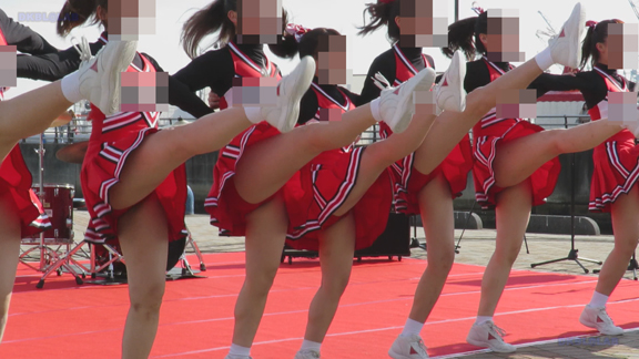 メンバーが多くしかもVだけでなくタイツなしが多いのが特徴。演技開始前、ユニ姿で出番待ちのシーンもあり。