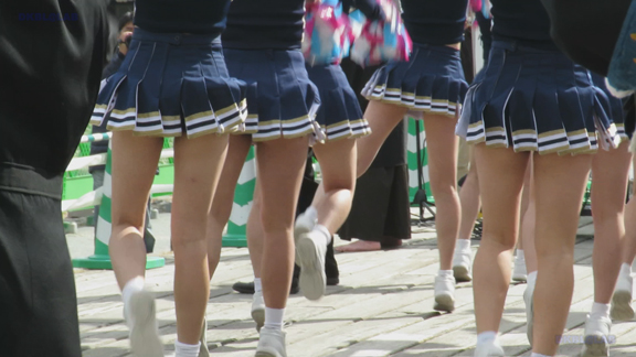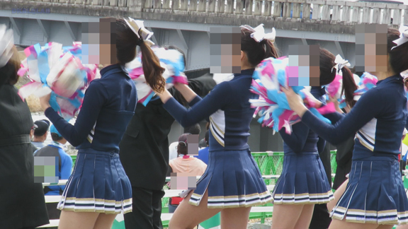 まだまだ寒い風が吹くような状況の中、タイツなしで応援、アングルもGOOD!