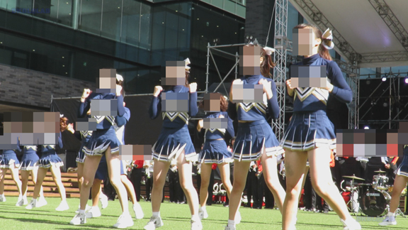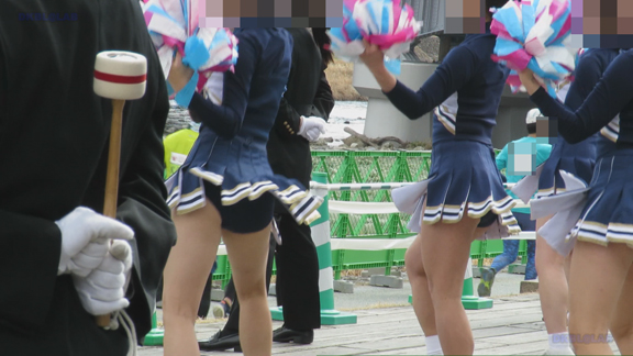 まだまだ寒い風が吹くような状況の中、タイツなしで応援、アングルもGOOD!