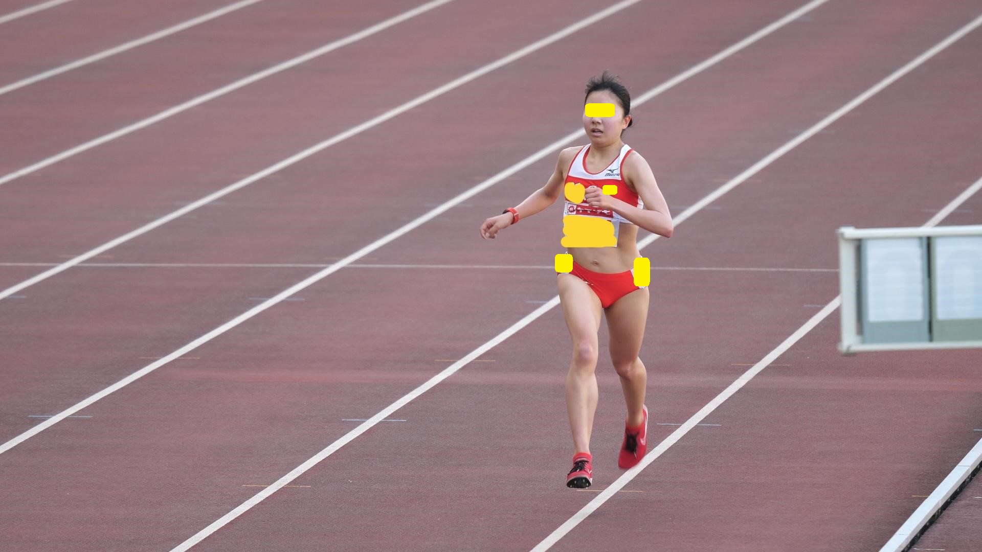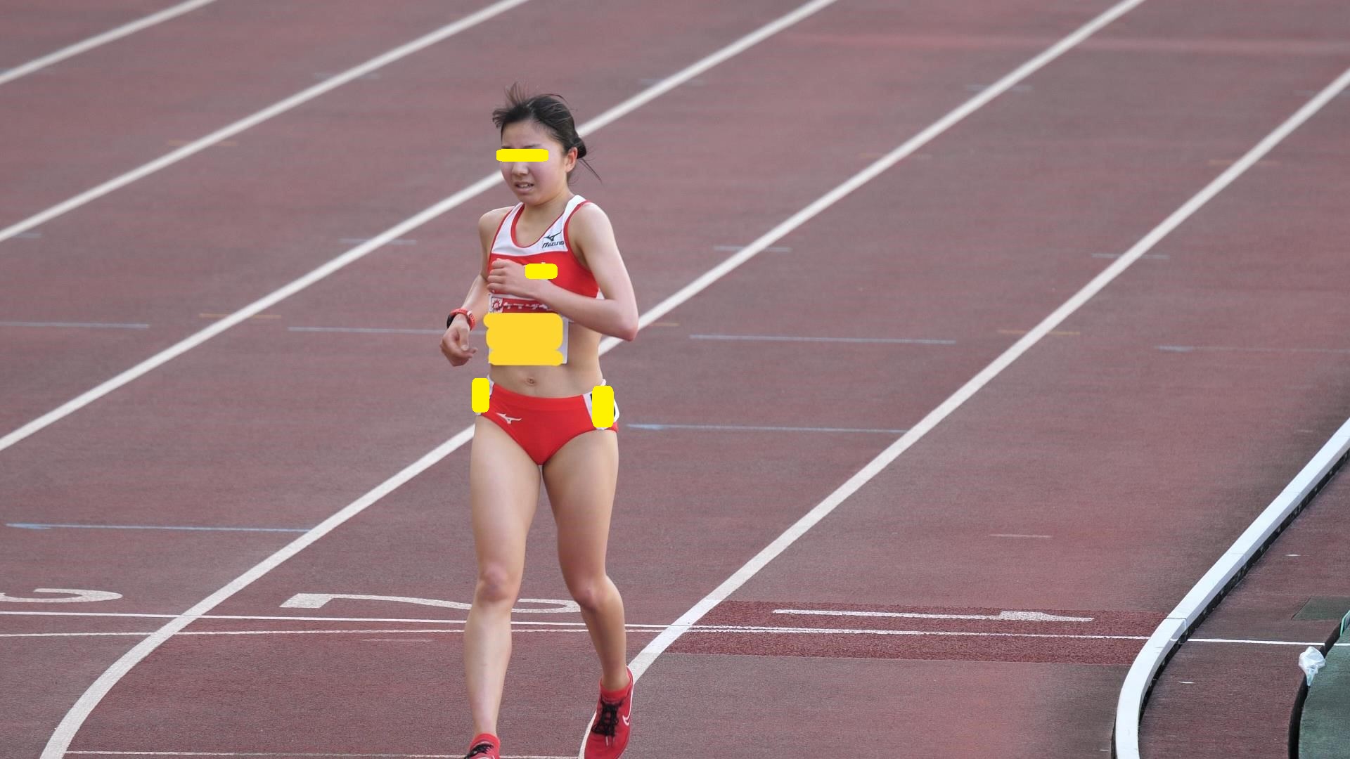 ブルマ選手は走ることで、筋が微妙に強調されてきます。