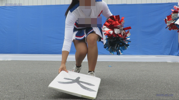 半白下半赤のユニチームの登場、ステージ上で繰り広げられる華やか鮮やかチア演技。