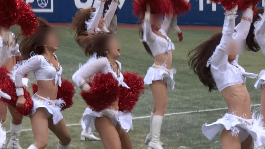社会人アメフトK社とF社のチアリーダーのサイドライン応援とF社のチアリーダーのハーフタイムショーの演技です。