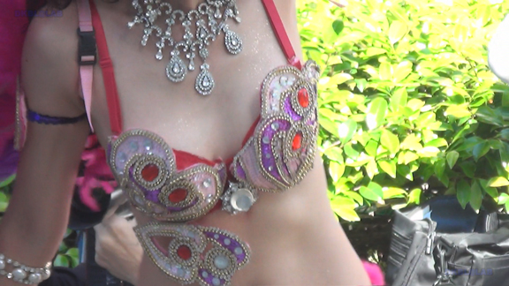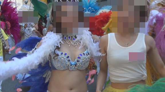 出演にひと段落ついてサンバ衣装の皆さまの記念撮影シーン、いつもは激しい動きのサンバ嬢がよりじっくりお楽しみいただけます!