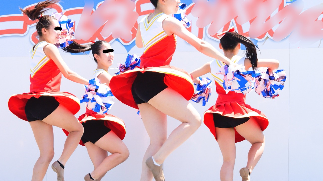 元気いっぱいで応援するちあガール、そんな彼女達のハイキックや側転を収めた貴重なシーンを最新高画質機材で撮影!!