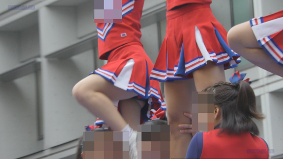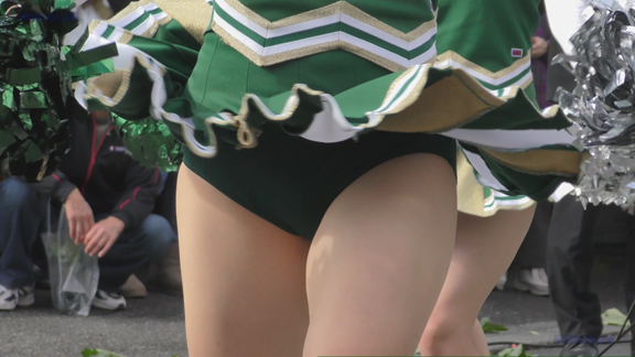 そのあとは黒ベースに緑、白のアクセントのチアチームが続く。