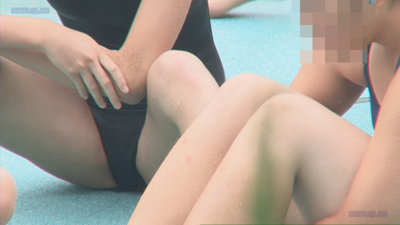 そのあとはシャワーを浴びてキャップをかぶって入水、泳いでいるシーンだけではなく水揚げ、プールサイドに待機中のシーンまで網羅!