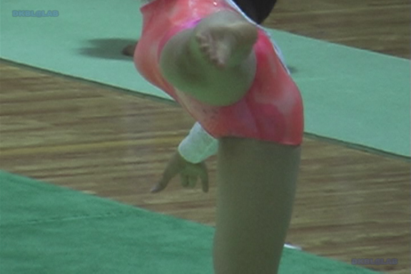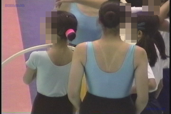 上がピンク系の幾何学模様・下は黒Ⅴのレオタ娘5人衆がなんと…「低めツインテ」という”らしい”左右2つ結び髪娘でそろっているという奇跡的映像が!!