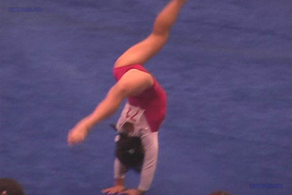観客席に注目!競技の合間に応援している娘にブルマ体操服姿の娘が!