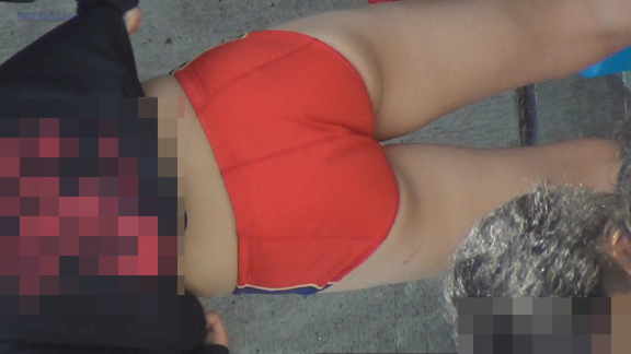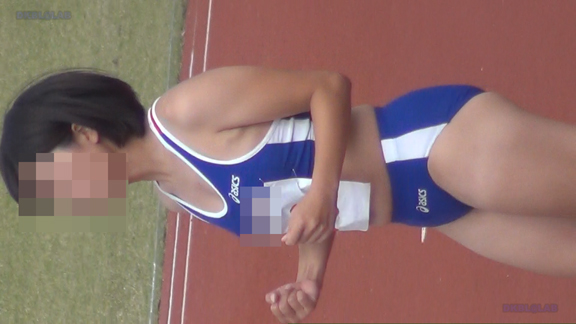 高跳び、幅跳びはレーシングユニにならない娘が多い中、いきなりの観客席前でVユニ娘が登場!