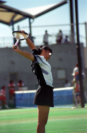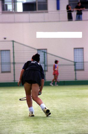 健康的な日焼けした生脚、ちらりと見えるブルマ…そして躍動的なテニスの プレーをご覧ください。