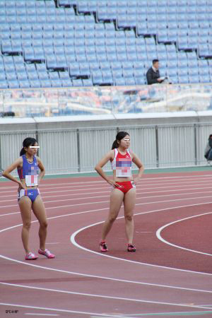 リレーの中継シーンを中心に、各レーンそれぞれの選手の緊張の瞬間をとらえております。