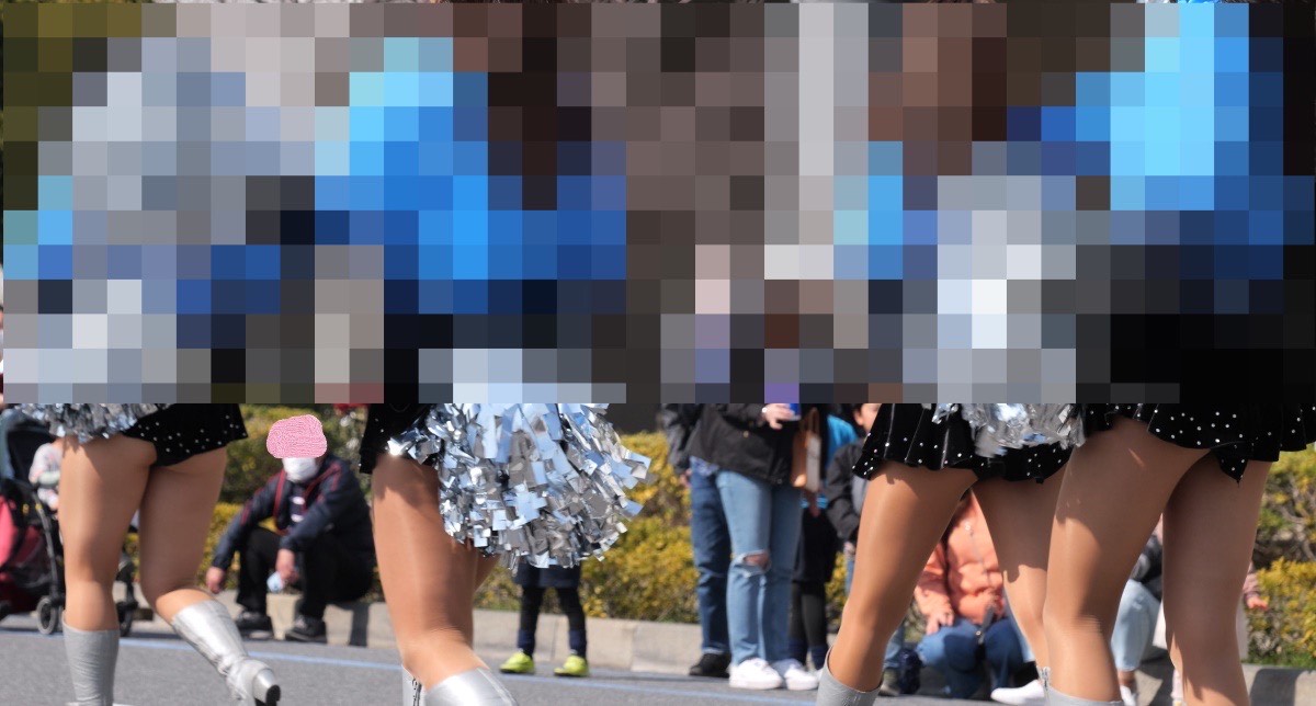 チアのド迫力の至近距離でのパレードと