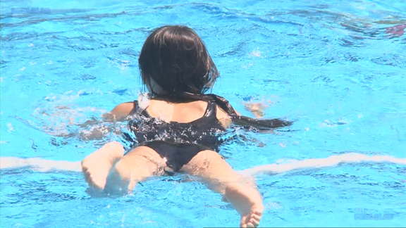 ”もう疲れた”とプールサイドにたたずむ水着娘の表情が素晴らしい!