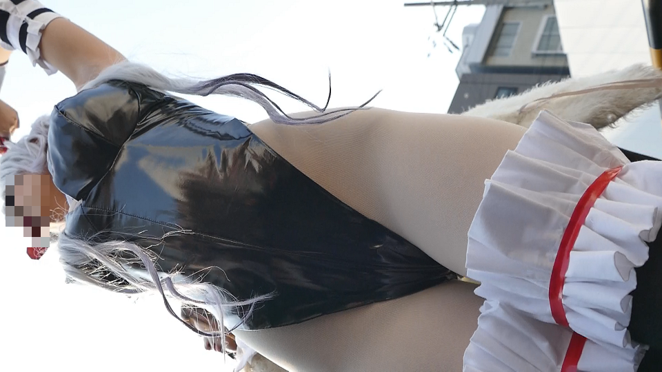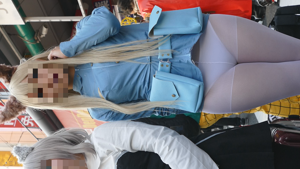 いきなりスカートをはき忘れたかの如く、下半身タイツ越しのパンツ丸出しのレイヤーさんが登場。一応セーフ?なんでしょうね。