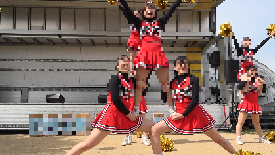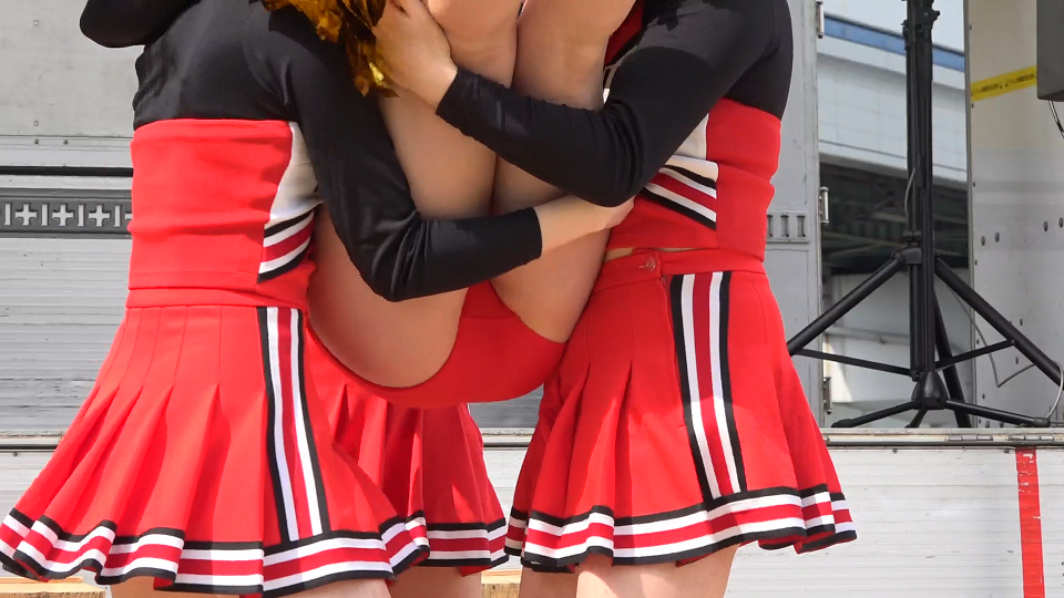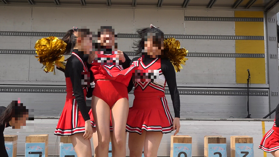 さすが有名チアリーディングチーム、赤スカート&赤チアパンが輝いています。