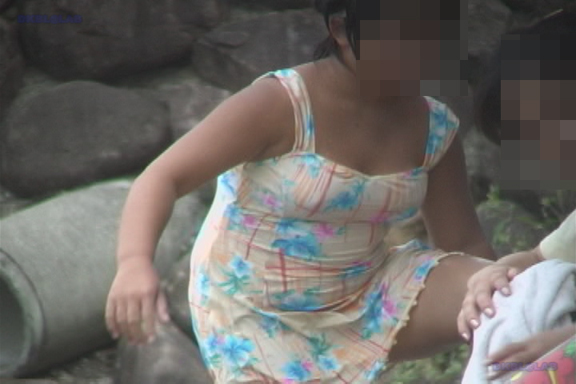 川のほとりでたたずむビキニ娘が登場!