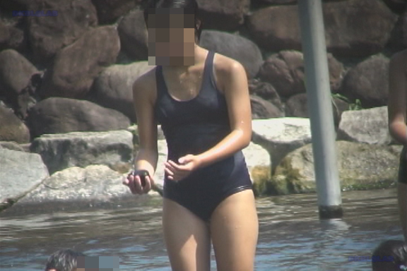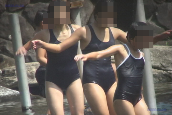 ボリューム満点のピタピタ感とかがんだ時に紺水着がちらっと素敵なシーンです!