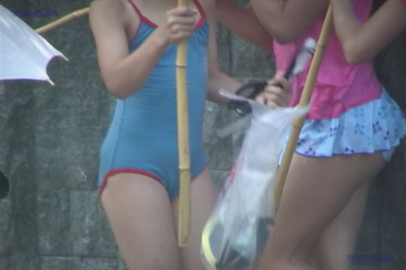 大き目の青Tシャツ娘の中の水着が明らかに!
