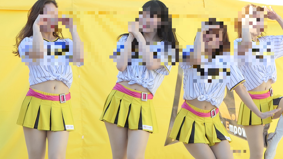 さすが、スタイル最高お姉さま軍団のダンスです。魅せるパフォーマンスは切れ味抜群、スカートが天高く舞い上がります。