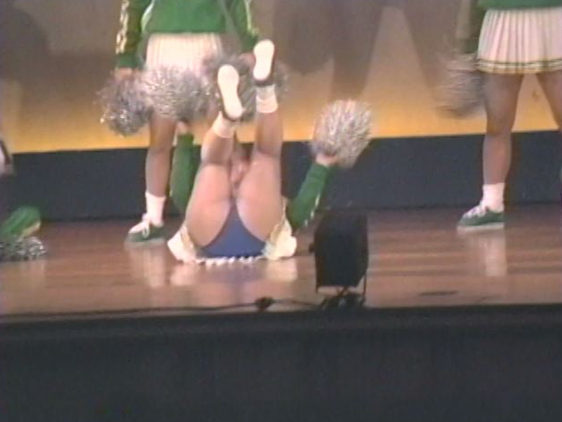 この格好でチアの技などを解説披露。チア部の出し物の様な雰囲気です。