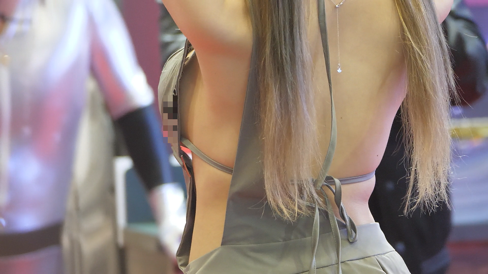 ボンテージ風ショートパンツもパツパツで身体のラインが丸分かりです。