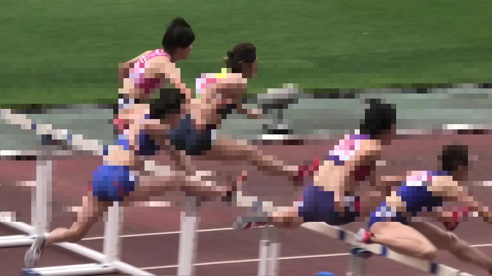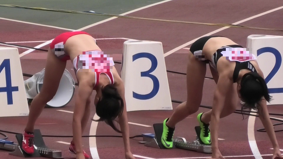 ショートスプリントと短距離障害走はカメラの前を横に駆け抜けていきます。