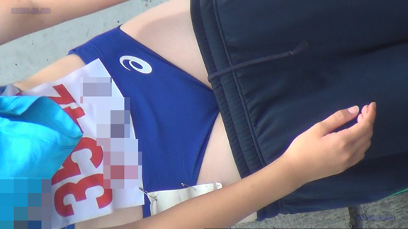 横アングルでジャージをずらし青Ⅴユニ娘・赤Ⅴユニ娘がレース後の身支度をじっくりと!
