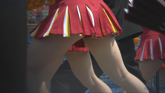 赤・白のタイトユニのチアチームの応援シーンが12分ごろまで。続いては青上、白地に赤・青のアクセントスコートのユニチアチームの応援シーンへ!