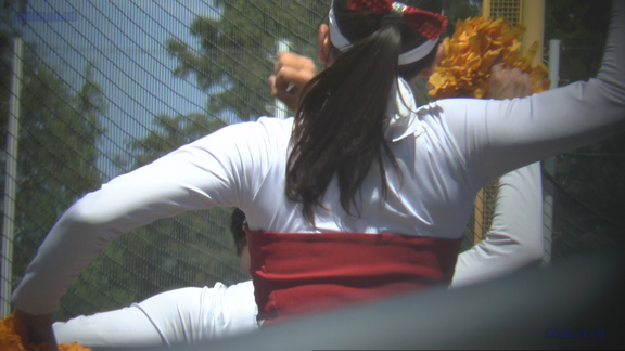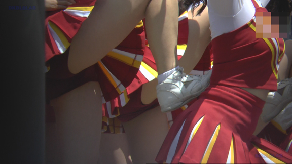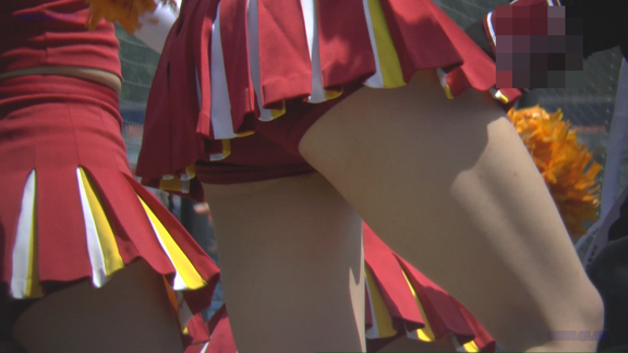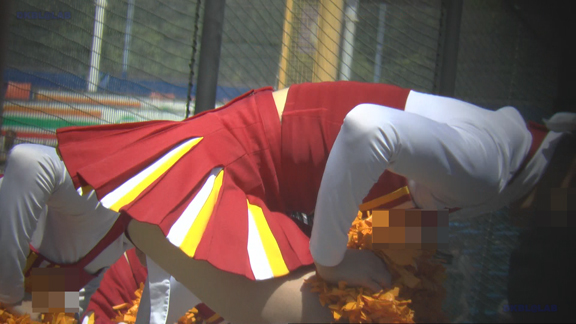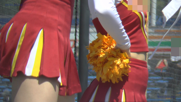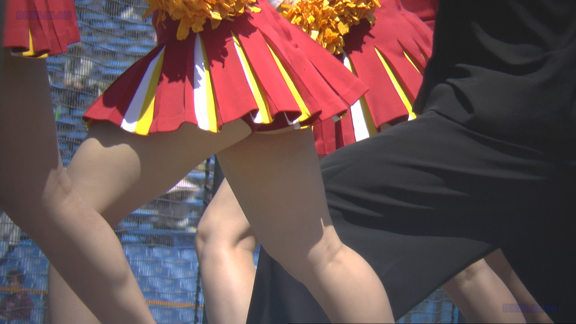 パツパツの短め赤スパアンダーがさらに短くなっていいかんじ!応援中にラインダンスやスタンツも披露!見ごたえがあります!