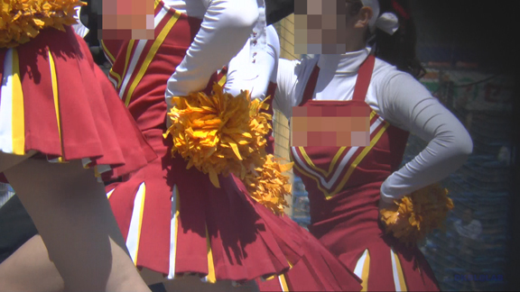 38分ごろまで続いては白・黄に黒ラインのチアチームの応援前待機シーン、応援演技の打ち合わせに真剣な表情。
