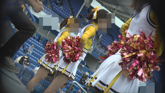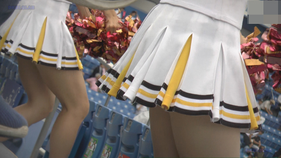 白・黄に黒ラインのチアチームの応援近接シーンから!