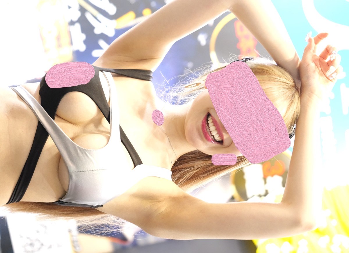 大人気ブースの、えちえち衣装のコンパニオンのお姉さんたちを