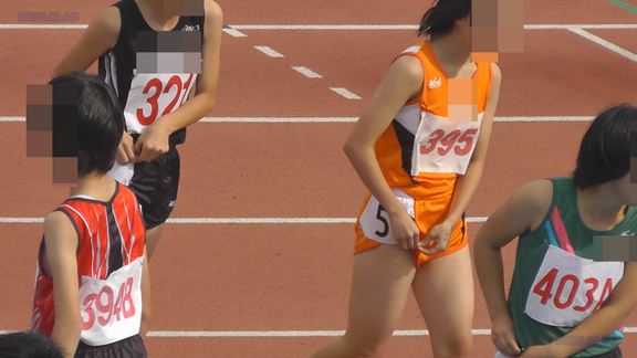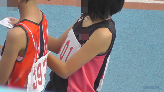 紺・赤Vユニ娘や緑Vユニ娘の登場です!スタートブロック付近の出走前のちょいブカ気味の緑Vユニ娘の初々しさがとてもいいかんじ!