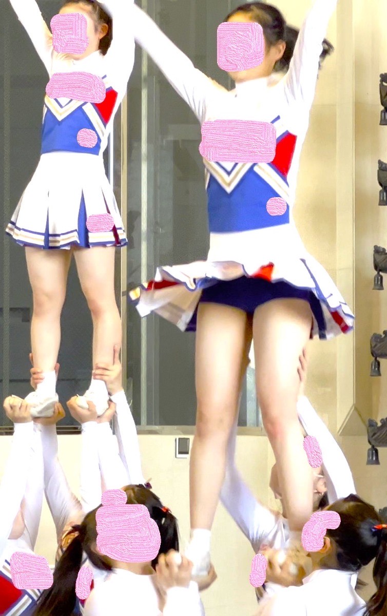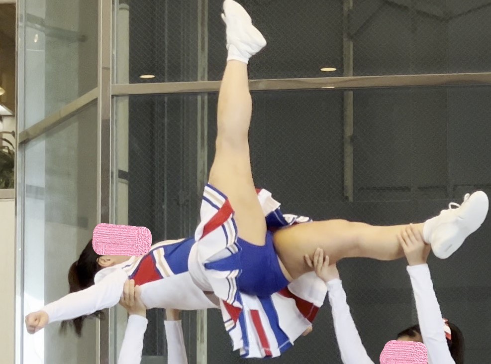 スタンツで何度も上へジャンプする度にミニスカが