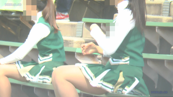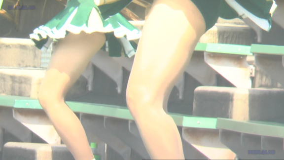 緑・白チアユニ娘たちの応援シーンから、もちろん緑のV型!