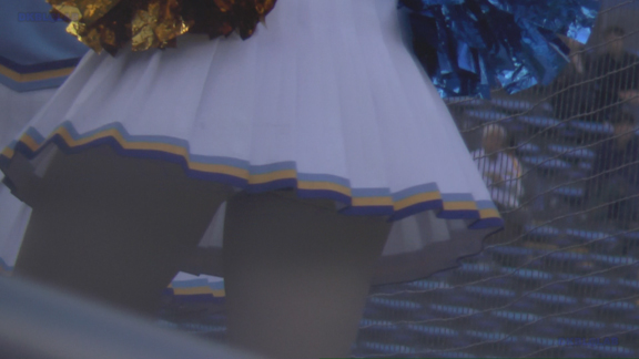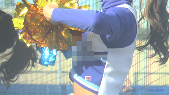 横からのアングルで応援の模様を長尺で。アンダーは短め黒スパで応援ヒートアップとともにさらに短めに!