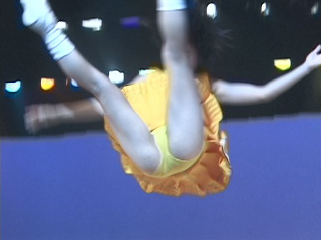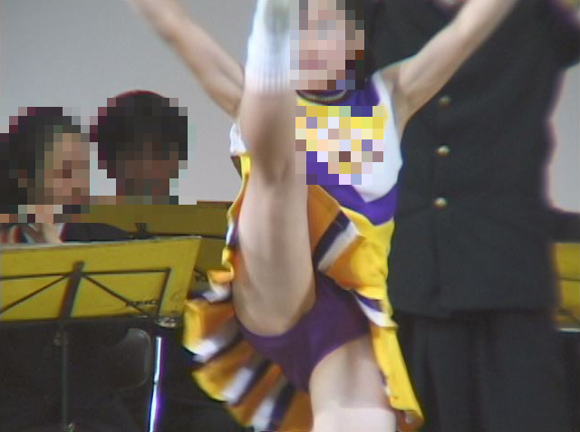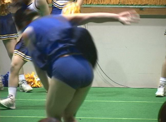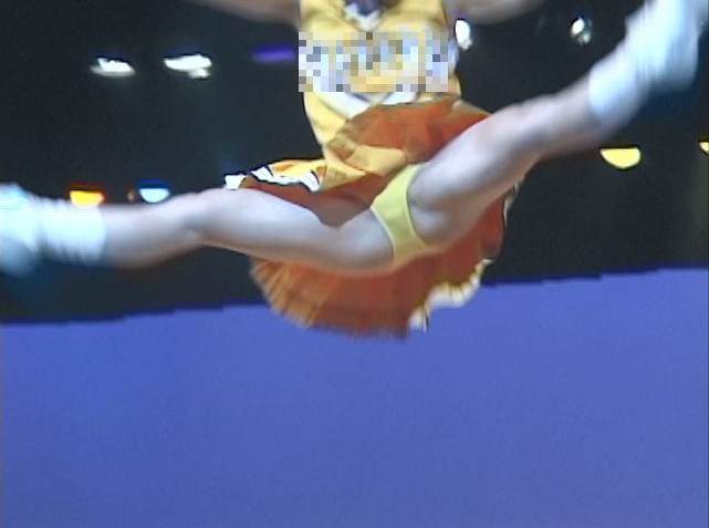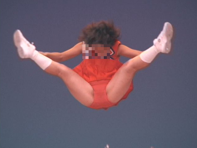 開脚ハイジャンプ、タンブリング、トス、スタンツ、スコーピオン、ハイキック、ターン、などなどチア技を披露。