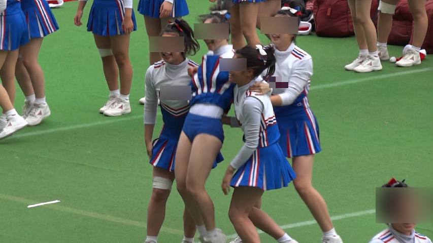 青いユニフォームの団体はハーフタイムショーにゲスト出演した別の団体です。