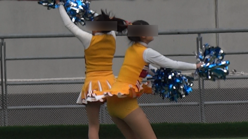 黄色のユニフォームが出場校の応援をするチアリーダーです。
