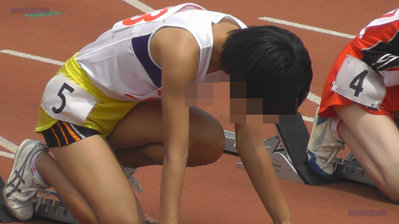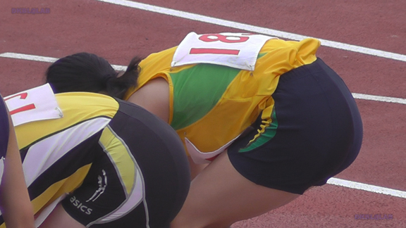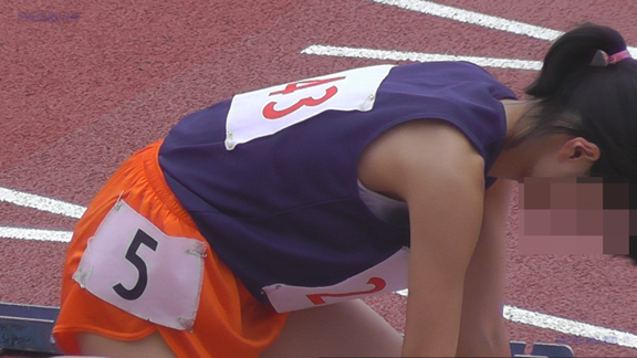 21分ごろからは短距離走の模様。大きめランシャツ娘のスタートシーンのほかスターティングブロックを整えるシーンなど見どころシーン連発!