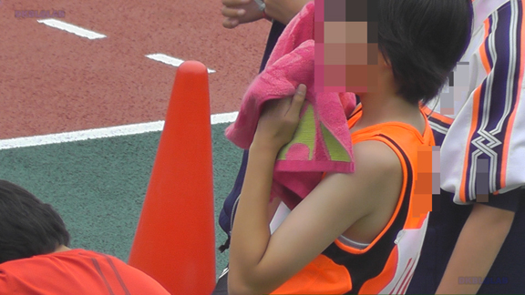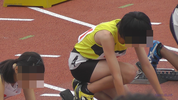 スターティングブロックを前かがみで調整する姿やスタート練習をする姿など大きめランシャツ娘の魅力盛りだくさん!なかには通常体操着で出場の娘もいて、初々しさも存分に満喫!