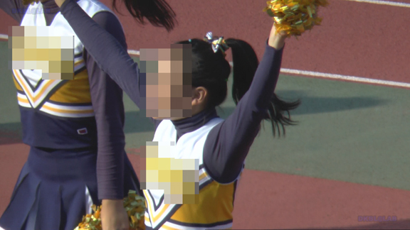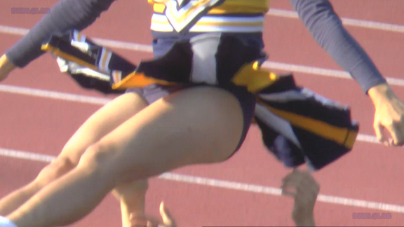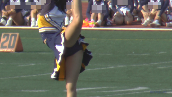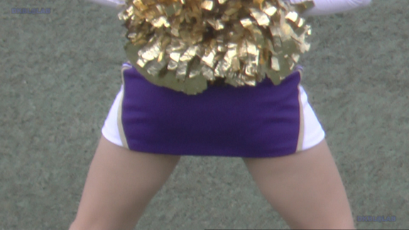 お次は16分ごろからラストまで紫・白のタイトなチアユニ娘の応援模様!