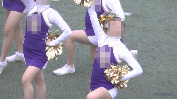 広いフィールドでのハーフタイムショーではダイナミックな演技を存分にお楽しみいただきます!ハイキックシーンやY字バランスシーンなど、短め紫アンダーも存分のご堪能頂けます!