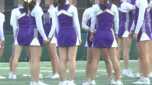お次は16分ごろからラストまで紫・白のタイトなチアユニ娘の応援模様!