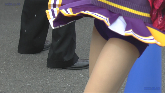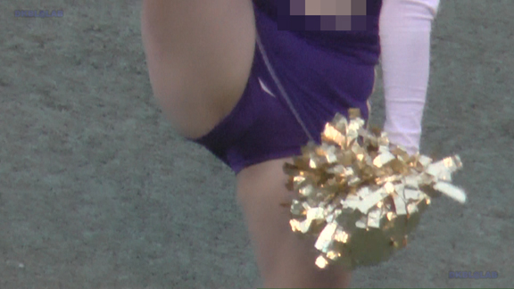 紫・白のタイトなチアユニ娘たちのフィールド応援シーンから!